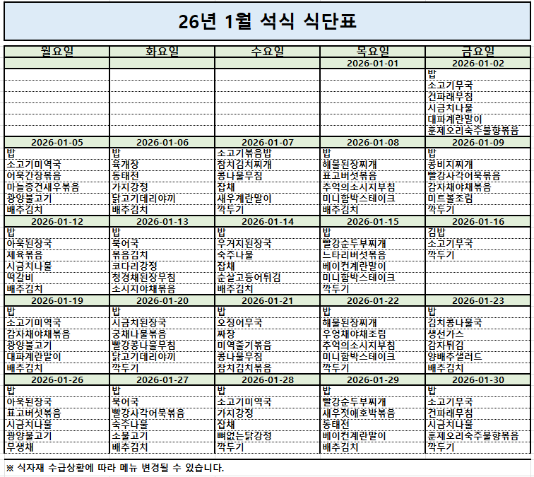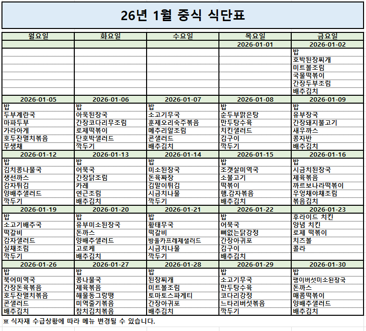 2026³â 1¿ù ½Ä´ÜÇ¥